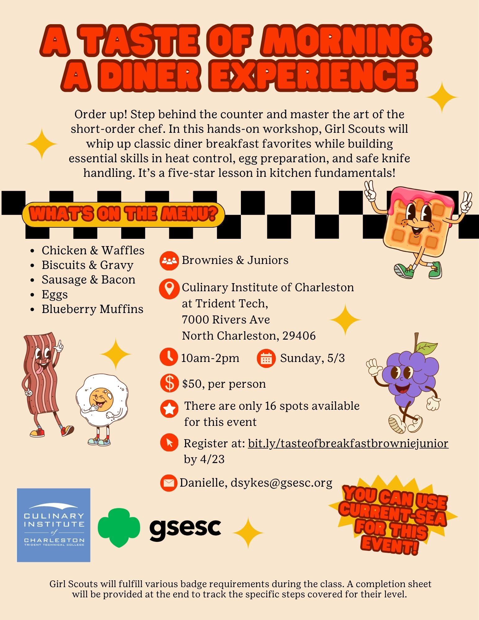 I understand the event fee(s) are non-refundable and all persons attending must be registered members of Girl Scouts of the USA, unless the event is also open to Tag-A-Longs. Girl Scout Adults attending must have a Background Check on file with GSESC. This event will take place rain or shine unless GSESC offices/facilities are closed due to weather.