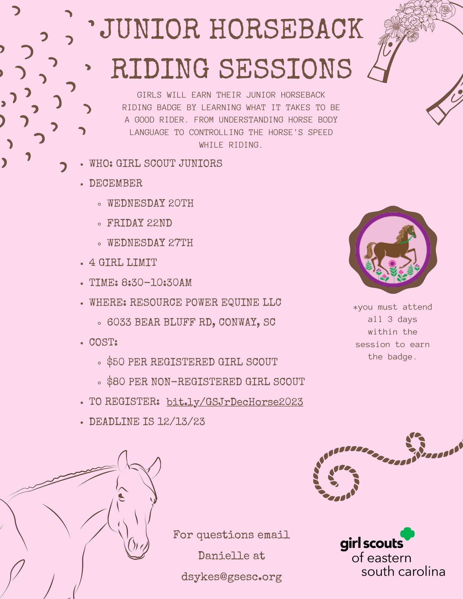 I understand the event fee(s) are non-refundable and all persons attending must be registered members of Girl Scouts of the USA, unless the event is also open to Tag-A-Longs. Girl Scout Adults attending must have a Background Check on file with GSESC. This event will take place rain or shine unless GSESC offices/facilities are closed due to weather. NO TAGALONGS ALLOWED DUE TO LIABILITY.