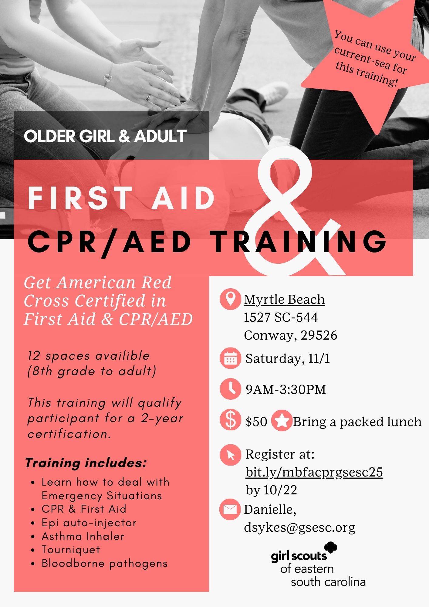Myrtle Beach Older Girl and Adult First Aid CPR