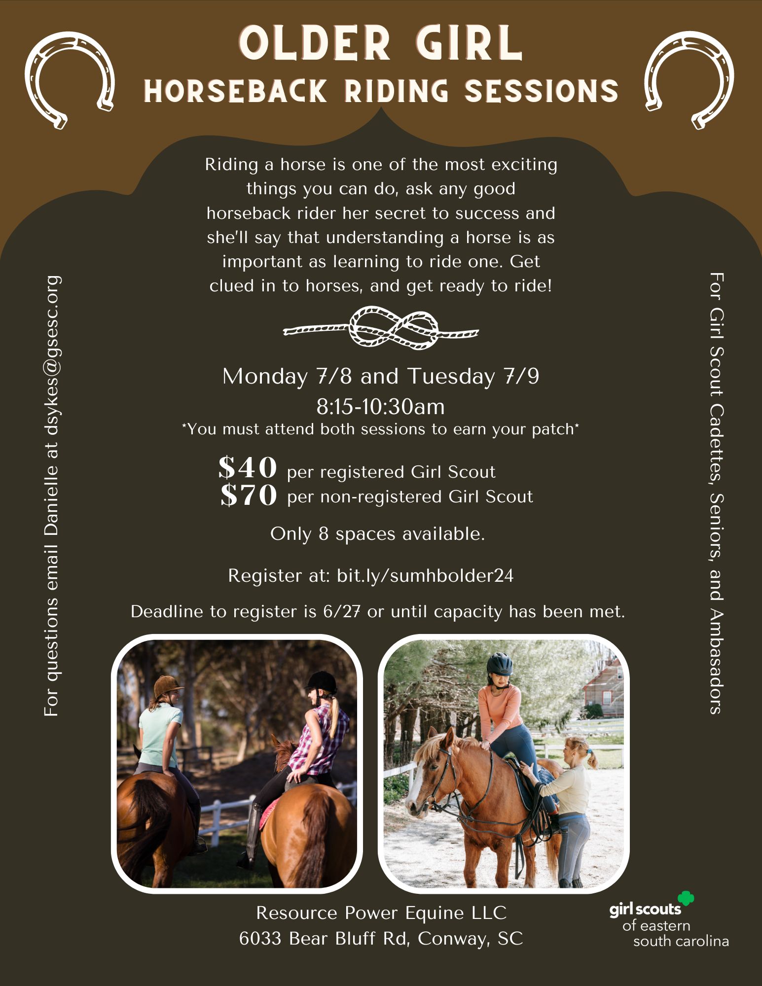 I understand the event fee(s) are non-refundable and all persons attending must be registered members of Girl Scouts of the USA, unless the event is also open to Tag-A-Longs. Girl Scout Adults attending must have a Background Check on file with GSESC. This event will take place rain or shine unless GSESC offices/facilities are closed due to weather. NO TAGALONGS ALLOWED DUE TO LIABILITY.